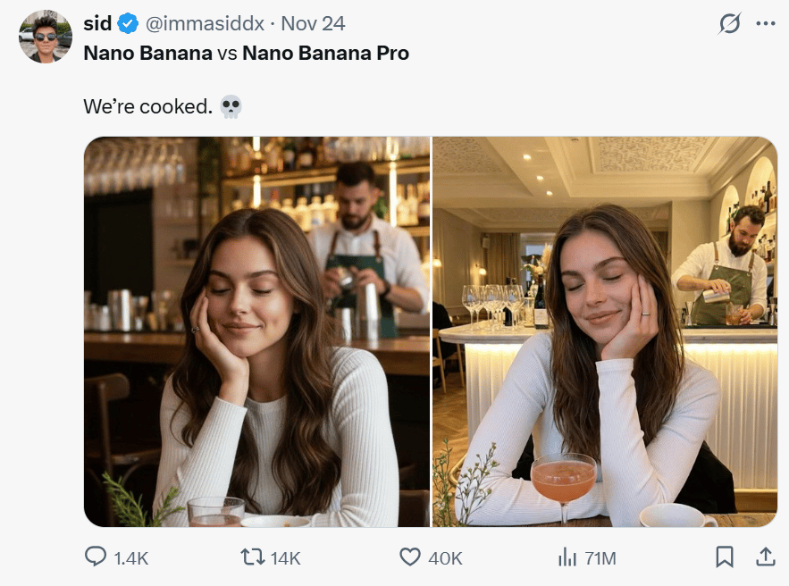 Nano Banana Pro é o novo modelo de imagem do Google, baseado no Gemini 3 Pro, focado em gerar e editar imagens com qualidade de estúdio e ênfase em texto dentro da imagem. Ele combina raciocínio avançado e grounding em informações de mundo e (até) em dados em tempo real para criar infográficos, diagramas, receitas e explicações visuais mais úteis e contextuais.